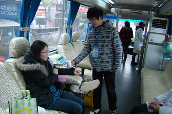 献血的同学中有第一次献血的也有献过好几次的。记者采访了旅管院的于斌同学,他曾经是旅管院的青志部部长,现已大三,一共献过三次血。他说自己献完血后并没有多少不适应。护士对此的解释为,献血后的反应与每个人自身的身体素质是相关的。同时,一位第一次献血的来自旅管院的大二学生易咏河同学,在谈及前来献血的原因是笑说:“献血是一件好事嘛,本来大一时就准备献血的,但是当时还未满十八岁,所以未能如愿。”