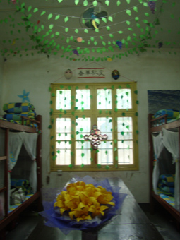 今天早上,由团委学生会各部长组成的评审团对参赛的寝室进行了初审。评审团分为三组,轮流深入每个寝室进行评审。评审内容分为寝室魅力设计和DIY环节两部分。寝室魅力设计又包括寝室主题,环境卫生以及创意和设计。各个寝室运用不同的设计理念展现不同的寝室风采:有古色古香的书香寝室,如“书女轩”和“意园”,也有朝气蓬勃的寝室,如“奋斗之家”。各寝室将环保的核心理念贯穿整个设计,有的将吸管做成门帘,有的用一次性筷子做成房子,寓意“在我们用一次性筷子时,请想想这曾是小鸟的家”。