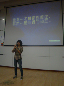 主持人于淼同学首先公布了初赛阶段各班的拉票成果,11广电一班、11广电二班、11中文一班分别以359票、257票、248票赢得了前三甲,获得0.8、0.5、0.5的加分。