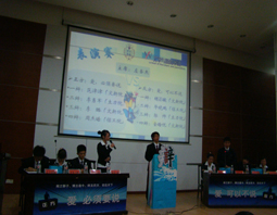 双方进行简单的介绍之后,辩论表演赛正式开始。正方一辩范津津首先从三个方面进行陈词立论:“在爱情中,给对方诺言,才会使对方安心;说出爱才能避免爱的走失;说出爱是对彼此爱的肯定。”反方一辩胡苾璇也从“爱必须表达,但主要依靠行动;说出爱要考虑对方的承受能力;真爱无言,大爱无疆,爱需要行动”三个方面进行破题立论。