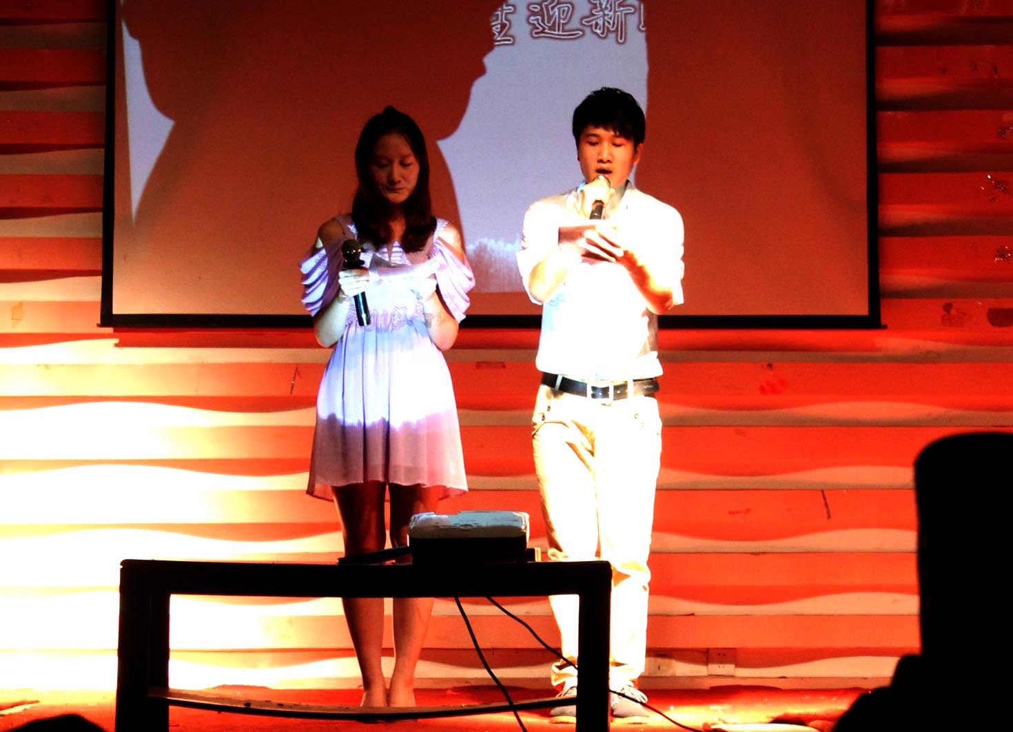 本次晚会在由科大友情支持的现代青春热舞中拉开帷幕,活力四射的舞姿,激情动感的旋律,无不使在场的观众为之倾迷。在欣赏完一段激情满怀,活力再现的热舞之后,是季院长的引吭高歌,他深情地唱了阎维文的《母亲》,歌声中流露出对母亲的深深情谊,台下的观众也寂静无声,思绪似乎都被这种歌声带回了充满母爱的世界里……接下来是文新院研究生们的才艺表演,两人声情并茂的合唱,个人独唱,极具民族风情与古典气息的舞蹈,配乐诗歌朗诵等节目纷纷上演,精彩纷呈,令人赏心悦目,心旷神怡。10级研究生蒋睿的那首动人心扉的《勇气》更是将全场气氛热烈调动起来了,优美动人的旋律,真切动人的感情在他的歌声中表达得淋漓尽致,许多在场的同学也不知不觉地伴着旋律手舞足蹈起来了,感受那种因为“勇气”所激发的内心对生活的激情与斗志。11级古代文学同学表演的《新古典之流光飞舞》更是身姿曼妙,韵味无穷,清丽雅致的服装,绘有中国画的团扇,柔美的动作,仿佛把人带回了遥远的古代,嗅到了唐宋的气息……古代文学同学们精彩的表演也让11级比较文学的同学不甘示弱,她们的舞蹈《爱你》,跳出了潜藏于内心那份青春的活力,是她们富有激情的舞姿告诉我们青春本应这么张扬和潇洒的!晚会就在这样一种激情高涨,欢乐洋溢的氛围中进行着,而把全场气氛推向高潮的是11级新闻班的《爱的主打歌》,全场观众连连拍手称好,后面甚至还有几个男生高声呼喊:“再来一首!再来一首!”或许也只有这样高度动感与快节奏的歌曲才能真正唤醒属于我们这一代人本应有的潇洒与快乐,让人产生强烈的共鸣。