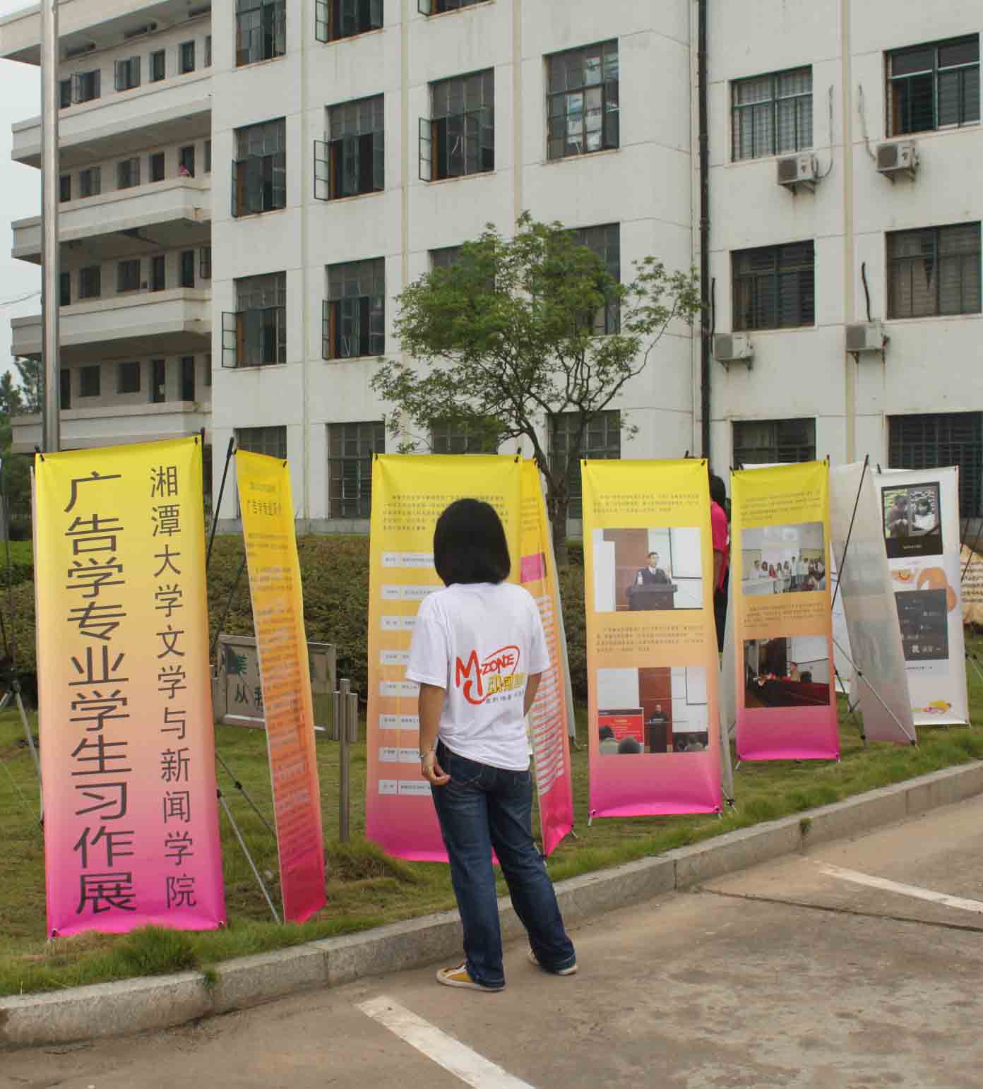 广告系于9月1日下午在三教前的草坪上举办了为期四天的学生广告作品露天展,并将于5日转展南苑,主要介绍广告专业发展的相关情况和学生作品。