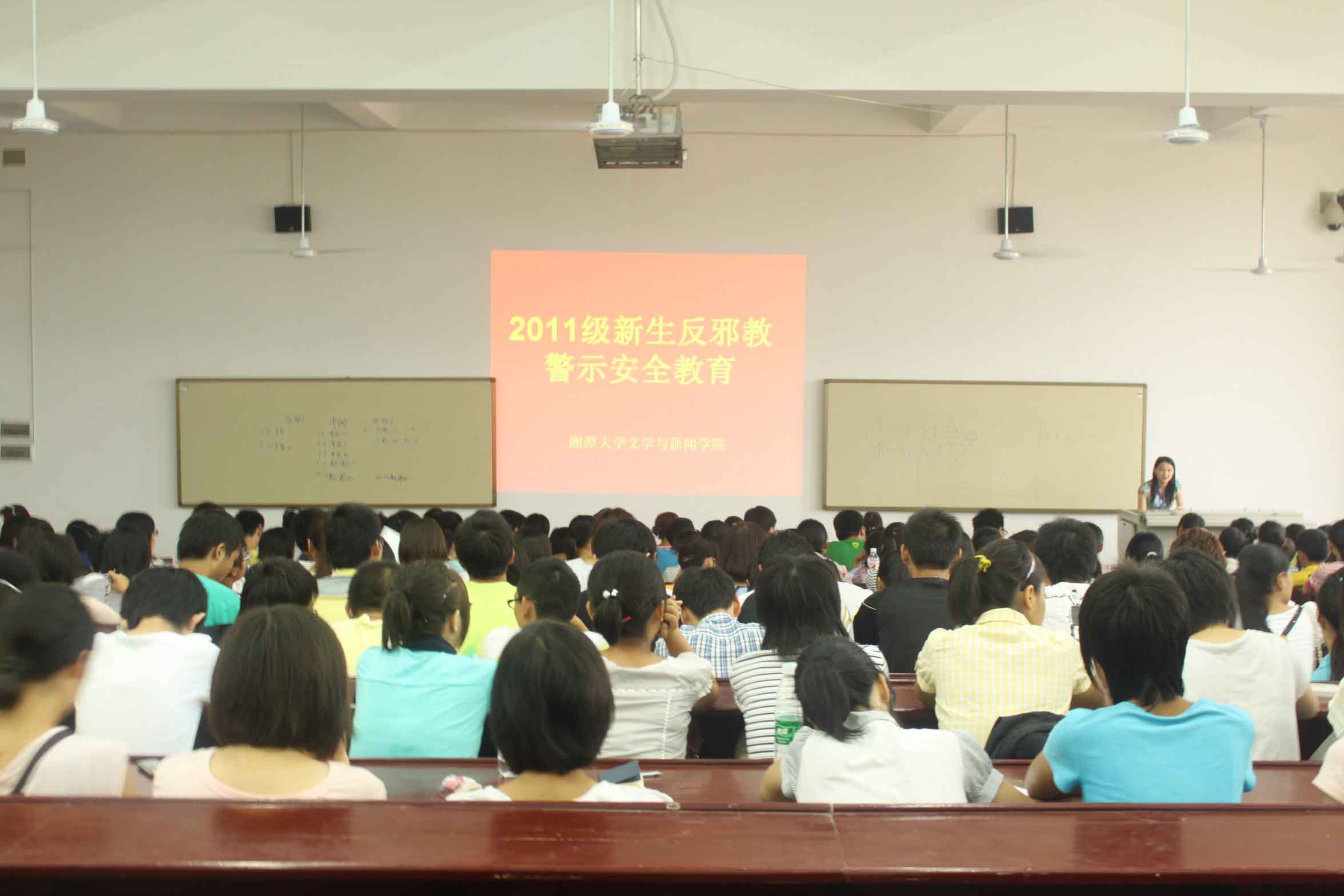 2011级新生辅导员组组织新生在逸夫楼一阶开展反邪教教育。反邪教教育是男同网