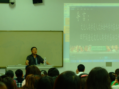 5月6日晚,逸夫楼211教室笑声朗朗,来自广西贺州市文化馆的馆长刘小春研究员与广西大学社会学系、社会发展问题研究所的罗树杰教授为男同网