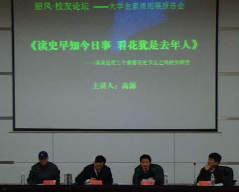 接着,他从学术角度就洋务运动的历史贡献、辛亥革命的大致轮廓、建党90周年来的损益表等进行了全方位阐述,从宏观的角度归纳了前述三大历史节点的性质差异、中国近代以来的内忧外患,并横向比较了中国、美国、日本在近现代相同历史阶段的不同发展结果及其深层次原因。最后,他指出,只要我们坚持改革开放,消除根治腐败,缩小贫富差距,化解深层次社会矛盾和不稳定因素,中国完全有能力在未来几十年中成为世界强国,真正实现中华民族的伟大复兴。中文专业出身的高先生对历史如数家珍,其独到的见解和多维度分析让同学们敬佩不已、感触良多,现场掌声阵阵,气氛活跃。