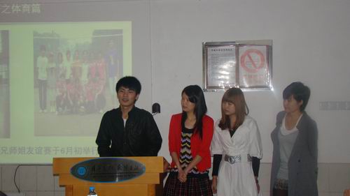 接着,第九届研究生会、团支部各成员分别走上讲台就各部门在过去一年里所做的工作作了简要总结,并勉励新成员再接再厉,争取在新的一年里做出更大的成绩。