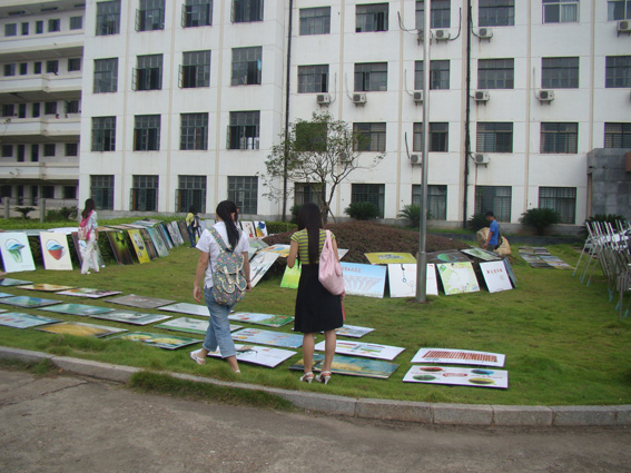 此次广告作品展于9月6日在第三教学楼前草坪上开展,展出的广告创意包括衣、食、住、行、用各个方面,一幅幅精美的图片,一个个精彩的创意,在观众们的面前展现了一场美轮美奂的广告盛宴。