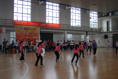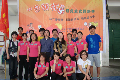 女排与数学院在体训馆展开了日新杯女排比赛季军的争夺。男同网