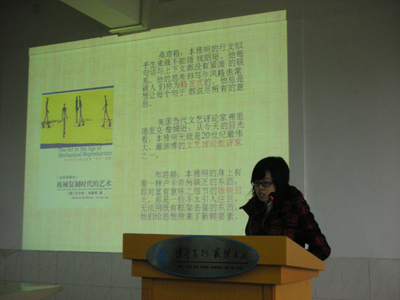 此次读书报告会分为七组进行。王德侃同学首先发言,就《传播学史:一种传记式的方法》这本书进行了分析,提出要学习传播学大家的学术精神,勤勉的做学问。接着余文静同学对法兰克福学派中的“文化工业”进行了解读,严密的论述、精彩的讲解,让同学收获颇丰;周旋同学则从传播生态学角度出发,提出要构建绿色传播生态;通过一张张可爱的图片以及自己的日记,杨维同学将此次报告会推向了一个高潮,最后周静同学则从中国传统文化出发来与大家分享一本《中国文化要义》,增加了大家的文学造诣。