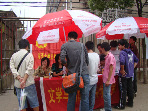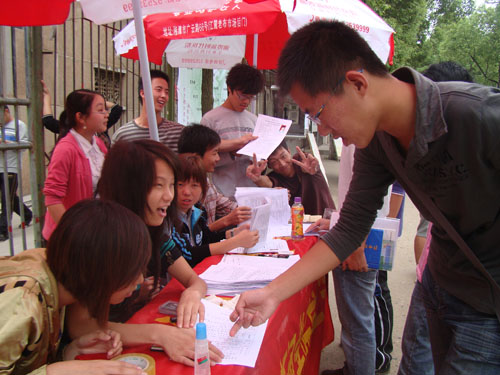 8月30至31日,男同网 第九届团委学生会在北苑摆点,开始招新。文新院新生踊跃报名,截止31日下午五点钟,已有170余人交报名表。学生会暂定于9月1日对新生报名者进行面试。