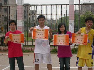 至此,此次文新院“专业杯”篮球赛冠亚季军完全出炉。前四名分别是07新闻系、06广电系、06中文系及06广告系。