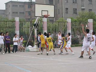 (本网讯)4月27日上午8:30分,男同网 “专业杯”篮球赛决赛在北青球场拉开帷幕,身穿黄色球衣的06广电系组成的队员(黄队)与身穿白色球衣的07新闻系组成的队员(白队)经过了1个多小时的激烈对决,07新闻系最终魁。