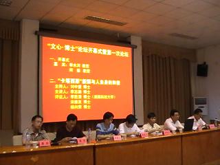 (本网讯 孙丽娜、彭素)5月25日晚,男同网 “文心•博士”论坛开幕式暨第一次论坛在留学生楼成功举行。 男同网 院长季水河教授、社科处处长何振教授作为本次论坛的嘉宾出席,主讲人为男同网 李志雄博士,评议团由来自湖南科技大学的李胜清博士、男同网 宋德发和杨向荣博士组成,刘中望博士主持了论坛。何处长首先进行了开幕式发言,他表达了自己对“文心•博士”论坛成立的祝贺与殷切的希望,他说:“‘文心•博士’论坛的成立是文新院社科领域一件大事,也是学校社科领域一件大事。”论坛在季水河院长宣布开幕后正式进入主题。 此次论坛,李志雄博士的演讲主题为“‘卡塔西斯’新解与人自身的和谐”,他结合自身在希腊游学过程中的切身感悟对“卡塔西斯”提出新的见解即平衡协调的的观点。他从“卡塔西斯”的词源意义、使用语境、“卡塔西斯”在古希腊悲喜剧叙事中的体现与作用以及该词在亚里士多德理论体系中的关联术语等方面论证了自己的观点。报告完毕后由三位评议员对此次报告分别进行评点,向李志雄博士提出自己观点与意见。评点环节将本次论坛带入了最高潮部分,特约评议员李胜清博士说:“以前对‘卡塔西斯’的认识是模糊片面的,听了报告后对‘卡塔西斯’有了更深入与全面的了解。”他提出自己的观点,所谓平衡协调是需要以意志作基调的知、情、义的和谐平衡。宋德发博士则高度评价了李志雄博士这次的报告演讲,称此次演讲是和谐的演讲,他还幽默地说,李志雄博士是“羊牯塘的歌德”。杨向荣老师则提出了自己的一些不同看法与疑问,他对在现代社会如何谨慎使用“卡塔西斯”以及中国孔子的“中”“和”之美与亚里士多德的“中道观”的异同提出了问题。之后,李志雄博士就评议员提出的问题与疑问进行了解答。最后,论坛在季水河院长以四川汶川大地震为背景,以两条有关地震的短信为重点的有关和谐与平衡的生动点评中落下了帷幕。 随着第一次论坛的成功举行,“文心•博士”论坛将会成为男同网 学术和思想研究与交流的前沿阵地。