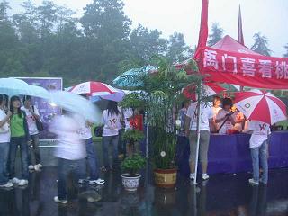 (本网讯)28日,新生报到正式开始了,迎新工作迎来了最紧张的时刻。 早上五点,天还没亮,文新院团委学生会的成员相继来到俱乐部门口,开始了一天紧张的工作。6点不到,天空下起了瓢泼大雨,给迎新工作增加了困难,但学生会赶紧联系了备用伞,以便给来报道的新生和家长用。