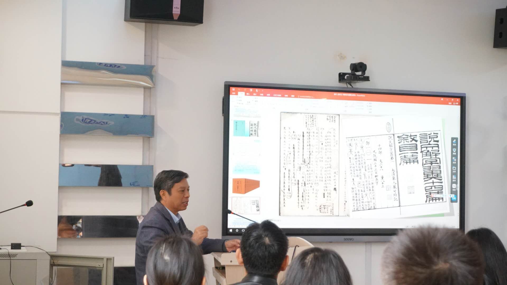 此次讲座,李运富教授以《清代<说文>学新材料的整理及其学术价值》为题,由浅入深。他以《说文解字》的学术地位简介和古今《说文解字》的大致研究史为切入点,进而引出这些年来郑大学者们对《说文解字》新材料的研究及成果。