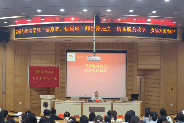 在图书馆报告厅举办了“情系脱贫攻坚,赓续家国情怀”主题论坛。师生共话“脱贫攻坚在湖南”系列丛书学习心得,分享“精准扶贫在湖南”的采访经历与收获。