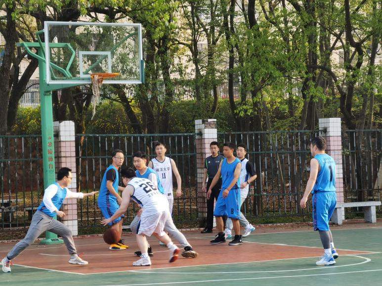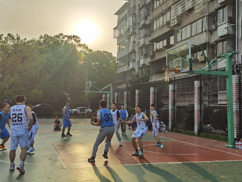 教师与研究生们在北苑篮球场进行了师生篮球友谊赛。