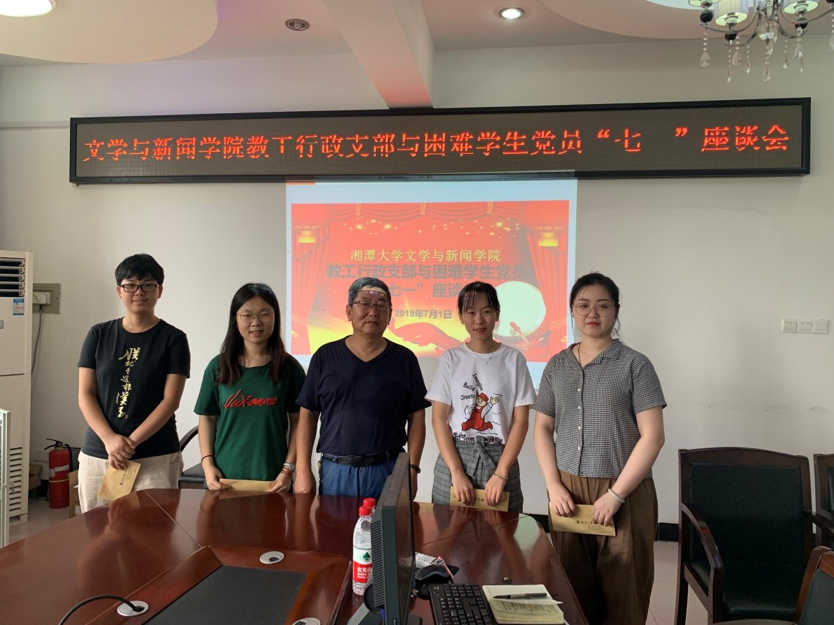 在第三教学楼317会议室召开教工行政支部与困难学生党员“七一”座谈会。院党委书记赵猛、党委副书记周鹏飞出席会议,教工行政支部书记季多武主持,全体教工行政支部党员、肖琳江、张铭麟等困难学生党员代表参加了此次座谈会。