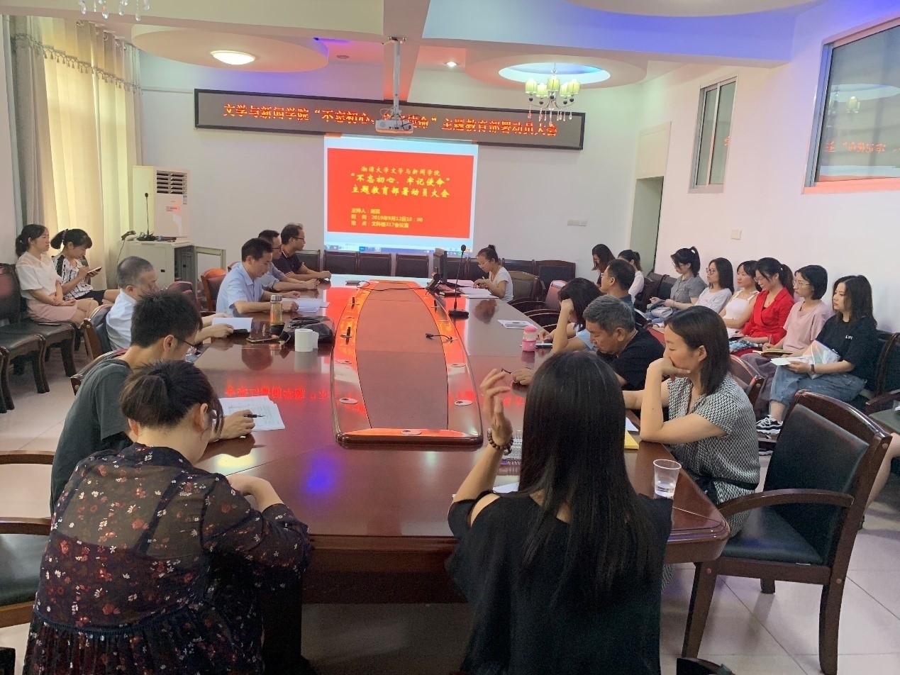 “不忘初心、牢记使命”主题教育部署动员大会在文科楼317会议室举行,会议由院党委书记赵猛主持,院党委委员、全体教职工党员、学生党支部全体支委参加会议。