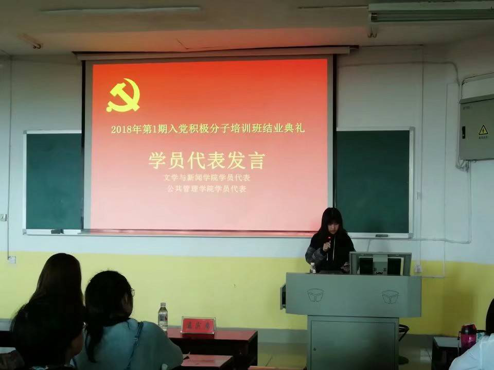在专题讲座结束后,2018年第一期入党积极分子培训班结业典礼开始。大会第一项,学员代表发言,分别由男同网