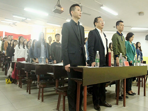 党委书记赵猛老师、外国语学院党委书记罗益花老师以及培训班班主任、学院专职组织员老师和党员发展对象全体成员。本次活动由外国语学院党委副书记陈娟老师主持。