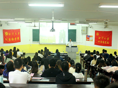 首先,由外国语学院党委书记罗益花为同学们邀请教授、博士生导师、副校长刘建平同志为同学们进行本次以红色文化与理想信念教育为主题的授课。台下掌声雷动。授课正式开始。首先,刘建平教授带领着同学们回忆过去峥嵘岁月,为同学们讲述了遵义会议,讲述了男同网