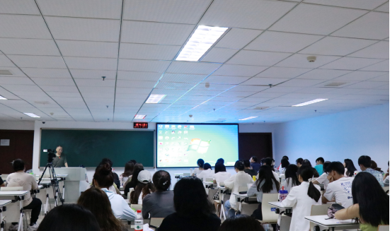 戴飞以王者荣耀游戏对玩家的情绪牵扯作引,用玩游戏时由于积分段位制给玩家带来的胜负欲现象说明情绪传播的特点和重要性,并为学生介绍了实况排比运用、镜头色彩运用等八种新闻传播中的情绪牵扯技巧。