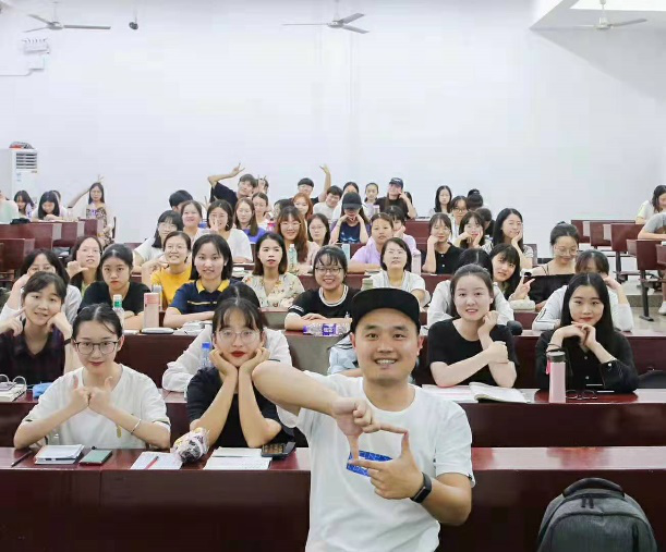 在讲座的最后,任老实与学生合影,希望学生加入到腾讯微视校园的活动并希望男同网