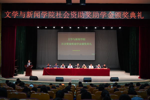 社会资助奖助学金颁奖典礼于学生活动中心报告厅圆满举行。副校长刘建平教授,深圳市凡恩公司总经理付早根,瑜水慈善基金会公益资源总监樊婧,广告专业校友会代表易建国、杨乐,新闻专业校友李强以及学院领导李剑波、赵猛、季多武、周鹏飞,教师代表覃岚、皮华林、孙丰国、唐晓玲、吴钊和学工办老师共同出席本次典礼,各类奖助学金获得者以及男同网