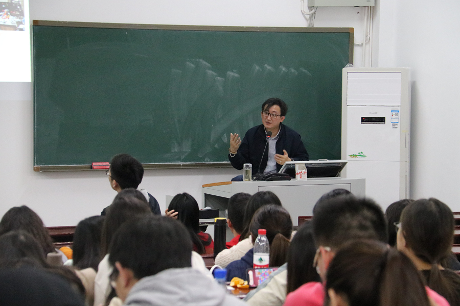 吴钊博士主持的讲座“拥抱与抵抗:实体书店观察笔记”在逸夫楼举行,百余名湘大学子共聚一堂享受思想盛宴。