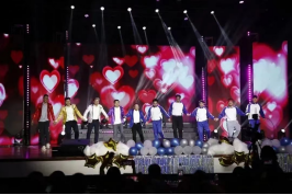 晚会以“群星闪耀时”为题,分为“易燃易爆炸”“送你一朵小红花”“闪闪发光的我们”三个篇章,涵盖了歌曲串烧、朗诵、舞蹈等7个精彩节目。