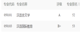 汉语言文学、广告学的“专业评级”均为A,全国排名分别为第52名、第31名,其中,汉语言文学全国324所高校上榜、广告学全国160所高校上榜。新闻学、汉语国际教育的“专业评级”为B+,全国排名分别为第54名、第53名,其中,新闻学全国168所高校上榜、汉语国际教育全国198所高校上榜。