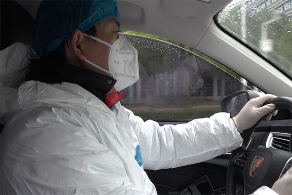 “我第一天送医护人员,送了一天我腿抖了一天。”他说。