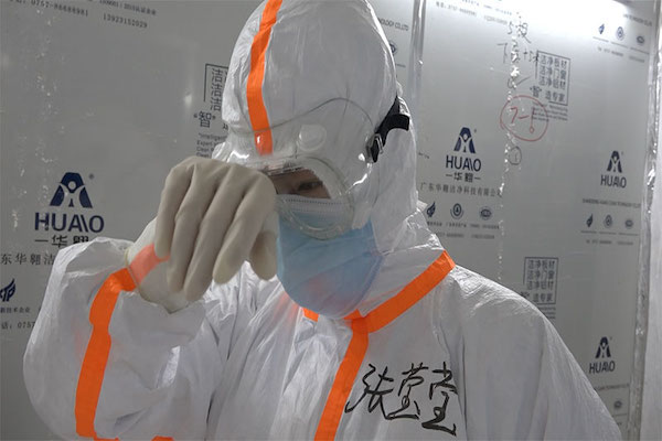 其中有一位护士叫张莹莹,3月份就要到她女儿的两岁生日了,提起女儿她就哭。眼泪在护目镜后面流下来,她没办法擦。我问她:“你怕吗?”“怕啊”“那你为什么还要进ICU啊?”“因为我是护士啊!”她这样说,没有半秒钟迟疑。说完这些,她就进入ICU工作了。