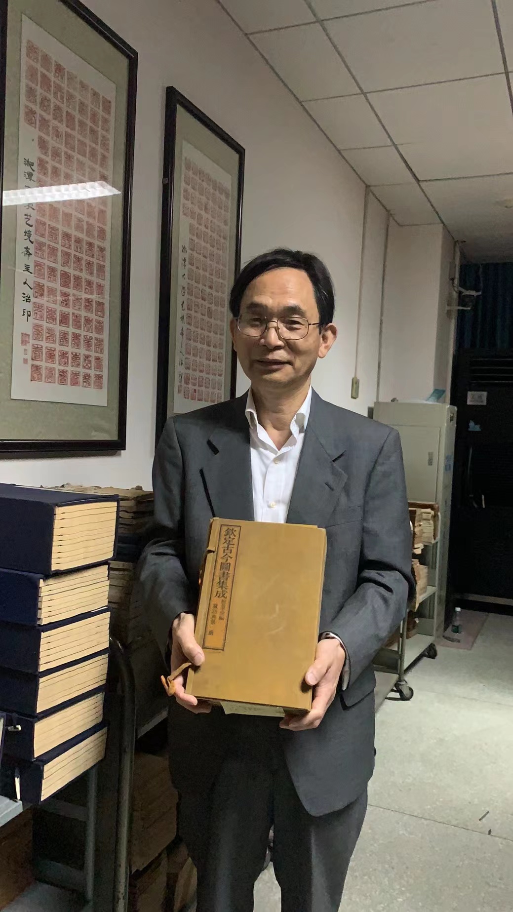 胡家建院友应邀参观了校图书馆,与校图书馆镇馆之宝《钦定古今图书集成》留下珍贵合影。他称赞我校留存的《钦定古今图书集成》是世界上最完备的版本。