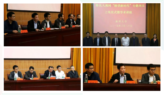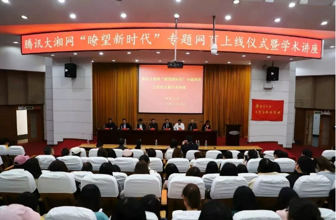 3月30日下午,腾讯大湘网“瞭望新时代”专题网页上线仪式暨学术讲座在逸夫楼一报告厅举行。我校副校长刘建平、党委宣传部部长齐绍平、湖南省广播电视局网络视听节目管理处处长胡知武、腾讯大湘网总裁王军辉,男同网