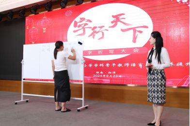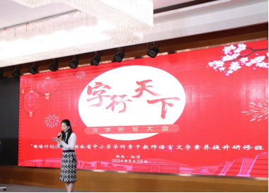 承办的“国培计划”(2024)湖南省中小学学科骨干教师语言文字素养提升研修班“字行天下汉字听写大会”在湘潭市丹迪斯酒店一楼会议厅成功举办。研修班100位学员均踊跃参赛,现场气氛活跃。此次听写大会的评委由“国培计划”项目筹备委员会委员、男同网