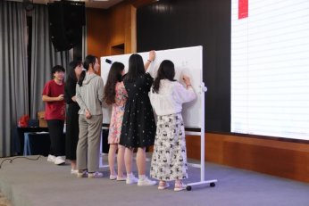 中场休息后,决赛正式开始。决赛按照给定的偏旁组写出正确的汉字,每组学员每次随机派出一人轮流登台,限时写出汉字,不能重复,也不能写错别字,否则淘汰。决赛现场,剑拔弩张。第一轮以“土”为偏旁书写汉字,3支队伍反应迅速。一班第4组因重复书写而惜败。剩下两支队伍以“米”为偏旁书写汉字,竞争榜首,气氛更加紧张。两支队伍针锋相对,毫不示弱,给现场观众带来了一场精彩的汉字竞写擂台赛。最终因一班第5组书写错别字,这场拉锯战终于告一段落,冠亚军也立见分晓,一班第8组险胜,加冕冠军。