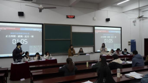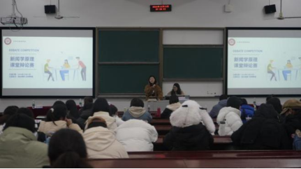 田华教授主讲的新闻学原理课程在逸夫楼第二阶梯教室成功举行课堂辩论赛。