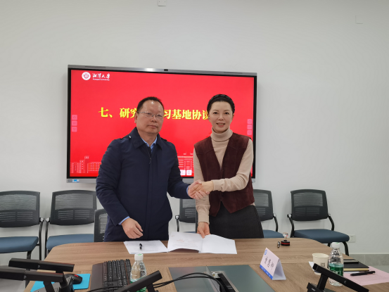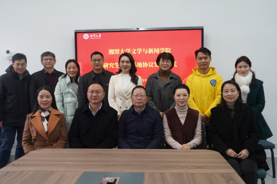 与湖南省播音主持研究会、湖南工业大学文学与新闻传播学院、湖南红网新媒体集团株洲站合作共建研究生实习基地协议签署仪式于文科楼214会议室成功举办。湖南省播音主持研究会会长仇晓、驻会副会长曾致、副会长何娟,湖南工业大学文学与新闻传播学院院长王丽萍,湖南红网新媒体集团株洲站站长李卫林,湖南工业大学文学与新闻传播学院副院长蒋军凤、汉语培训中心主任曾慧卿一行,以及男同网
