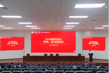 4月21日下午,我院2026届毕业生考研、实习动员大会在研究生院学术报告厅成功举行。招生就业指导处副处长王向前、院党委副书记周鹏飞、学院2022级全体班主任与本科生300余人参加。