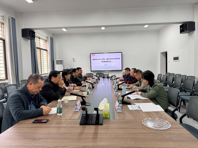 湖南科技大学人文学院党委书记曾志东、副院长李康澄等介绍了其学院在学科布局、专业特色及应用型人才培养方面的举措。双方围绕学科强化党建引领、打造党建品牌;学科建设中的标志性科研成果培育;人工智能背景下专业内涵建设;智媒时代新闻教学与实践的范式转型等共同关心的议题展开深入交流。