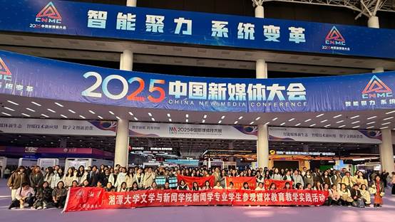 师生代表赴湖南国际会展中心参观2025中国新媒体技术展,师生们得以近距离接触和体验各种前沿的新媒体技术。