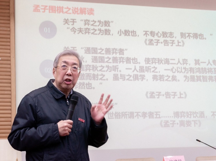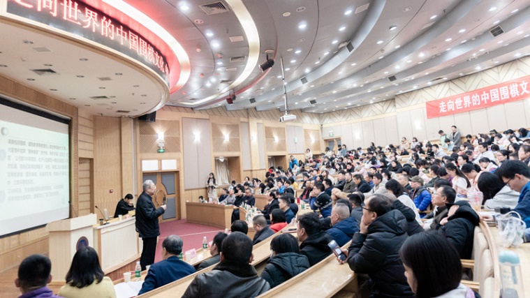 林建超主席作了主题为《走向世界的中国围棋文化》的报告。报告以习近平总书记提出的“围棋中包含着人生的哲学和世界战略”开场,指出这是对围棋世界性、战略性意义和价值的最高评价和经典论述。在讲座中,林建超主席追溯了围棋文化的历史发展源流,探寻了围棋作为中华民族发明的文化瑰宝如何成为贡献给全人类的智慧之果,梳理出围棋走向世界的四个历史性年轮:公元2世纪前后,开始向中原以外的民族地区传播;公元5世纪前后,开始向中国周边国家传播;公元15世纪前后,开始向欧洲国家传播;20世纪,开始走向世界。围棋作为中华民族献给世界的文化精髓和精神标识,从中国走向世界,并在全世界范围广泛传播,改变了人类智力形态的格局。林建超主席指出,围棋文化既属于传统文化,也属于现代文化,既属于高雅文化,又属于流行文化,既属于精英文化,又属于大众文化,已经成为世界人民认识中华文化的窗口、国家和平外交的桥梁、大国战略博弈的平台,围棋与人工智能的结合,领跑人类世界,延伸人类大脑,围棋应成为智能时代国际公共产品。在世界百年未有之变局中,围棋应发挥出其真正价值,中国文化自信在围棋上的表现是确立和实现使中国重新成为世界围棋中心性强国的战略目标。