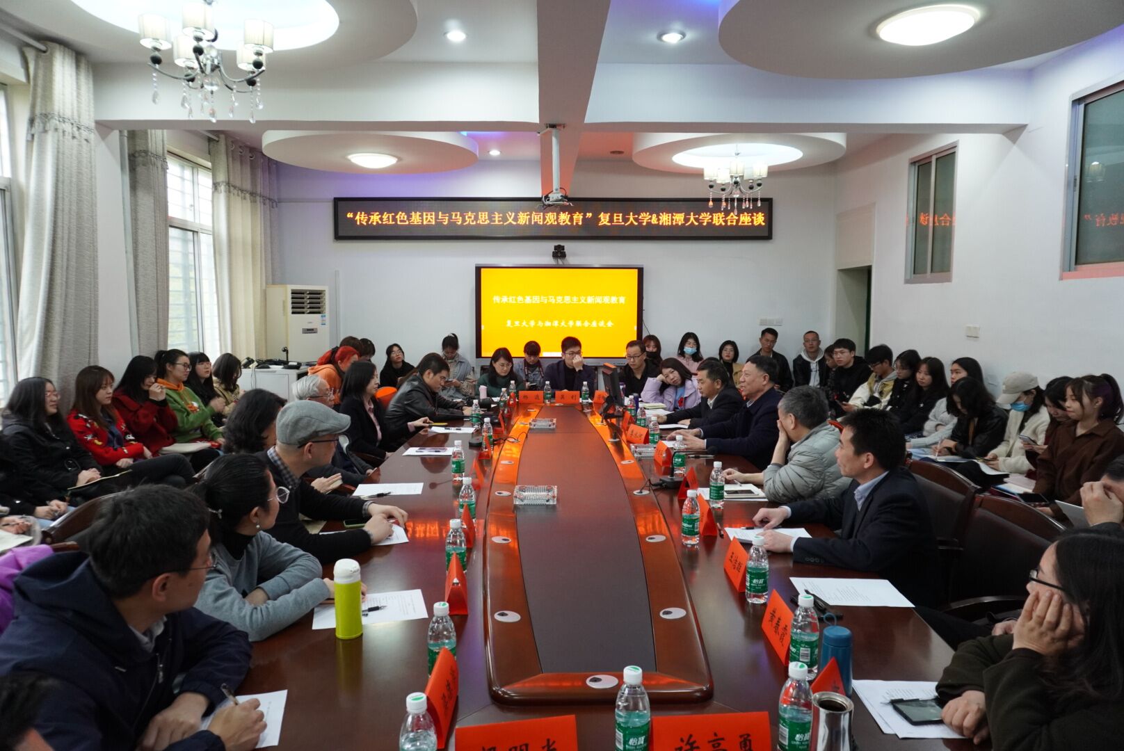 特聘教授唐湘岳,复旦大学马克思主义新闻观教学与研究基地主任马凌、副主任林溪声以及两校新闻系部分师生出席会议。