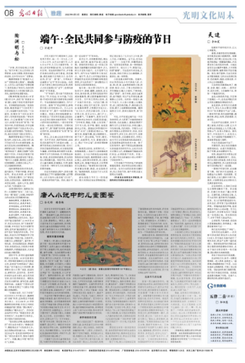 中国古代文学专业教师谷文彬副教授和研究生谢香梅合著的论文《唐人小说中的儿童图鉴》刊发于CSSCI期刊《光明日报》(校定二类)2022年6月3日第8版。该文为湖南省哲学社会科学基金青年项目“唐人小说中洞庭湖想象与书写研究”(17YBQ109)阶段性成果。