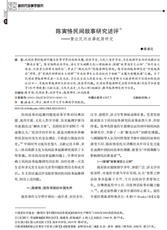 文本主旨:民间故事的起源问题时故事学界的经典话题,流传学派、文化人类学学派、历史地理学派均对此提出过“解决方案”。陈寅恪将流传学派、语文学与族群文化心理相融合,探赜“故事演变之公例”,“取外来之观念,与固有之材料互相参证”,开启了“眼光向外”的起源研究理路。陈寅恪的起源研究受“印度起源论”所限,有“重域外材料轻本土材料”“外来故事本土化论证过于粗略”“主题与母题混淆”之嫌,当下民间故事起源研究在一元发生论、多元发生论上存在分歧,对口传资料与文献资料的可信性和优先性认识不一,导致故事起源判定标准泛化、混杂等问题。民间故事起源研究应将内部视角(形态学和类型学)和外部视角(文献记述、文化交流史、文化心理)相交融,提升起源研究的可信度。