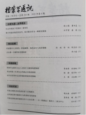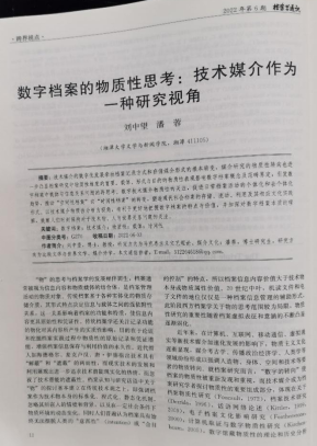 刘中望教授和博士生潘蓉合著的论文《数字档案的物质性思考:技术媒介作为一种研究视角》刊发CSSCI来源期刊、我校人文社科二类期刊《档案学通讯》2022年第6期,该文作为该期“跨界视点”刊载的两篇论文之一,从比较文论、媒介诗学的新维度审视数字档案的物质性问题。