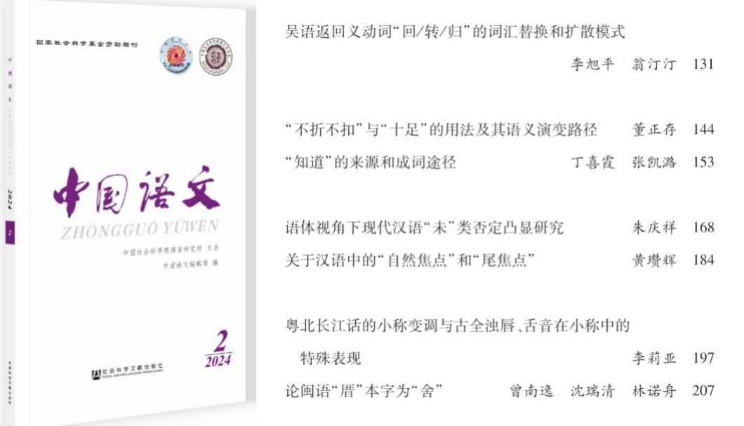 李莉亚博士的学术论文《粤北长江话的小称变调与古全浊唇、舌音在小称中的特殊表现》刊发《中国语文》(CSSCI,校定一类)2024年第2期。