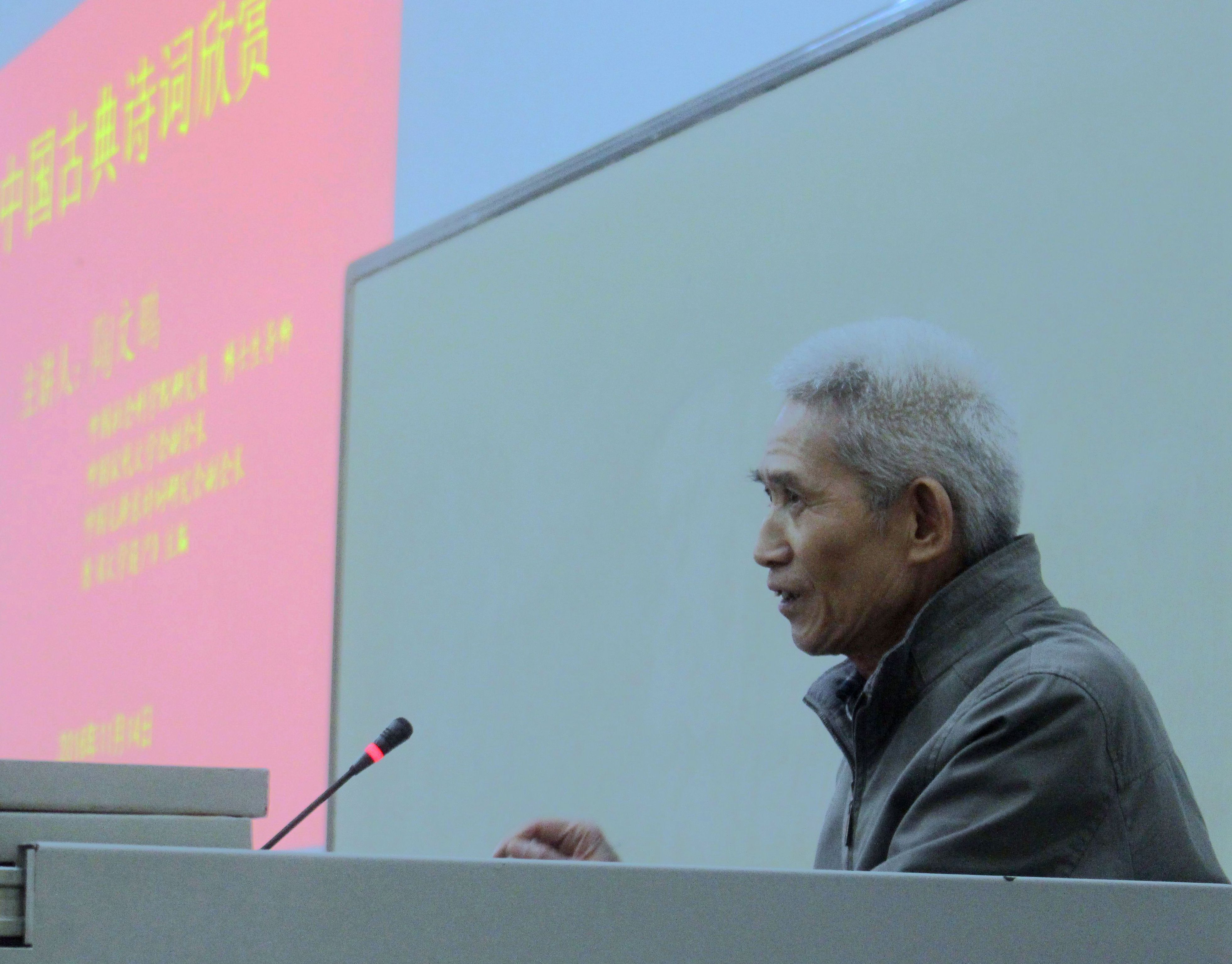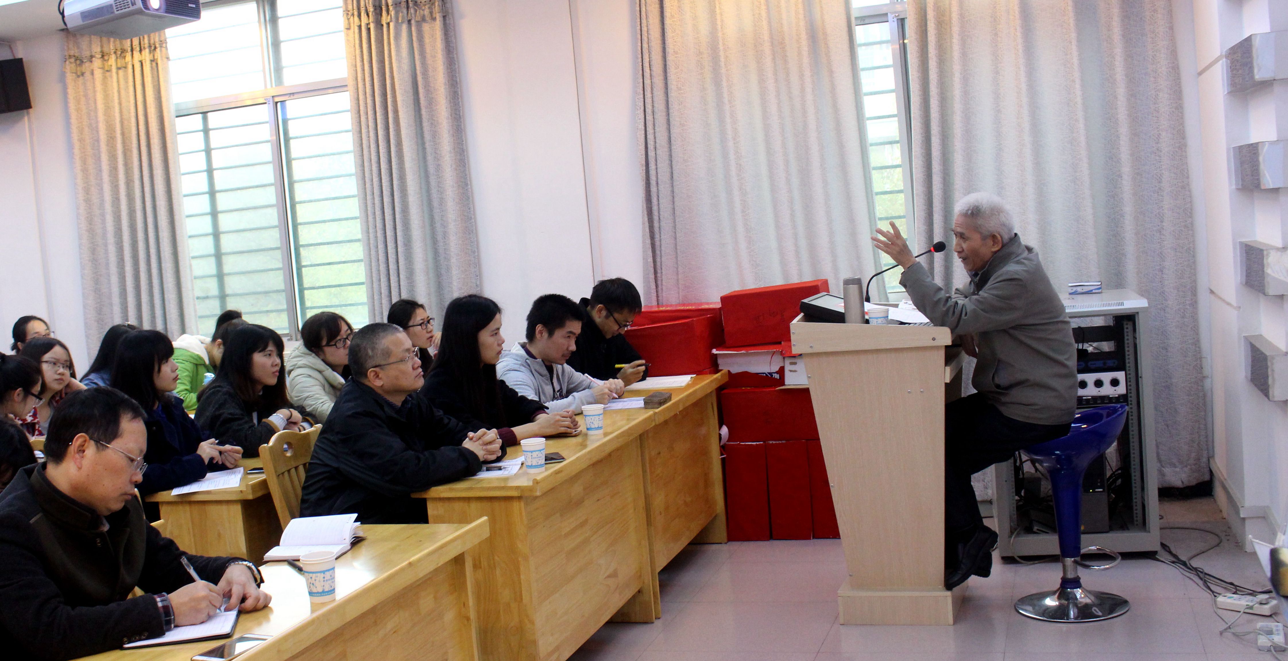 14日下午3点,陶文鹏先生以“韶风名家论坛”主讲人的身份在逸夫楼一阶梯教室讲述中国古典诗歌的欣赏与创作问题。他从古典诗歌与新诗的对比入手,结合自己的创作体验和研究心得,指出两者在艺术手法和审美特征方面的异同。他认为,古典诗歌在意象的运用、意境的创造、想象的新奇以及炼字炼句方面都有特别突出的表现,新诗对其多有继承和发挥,但行文的自由度更大,形式更为灵活,要写出好的诗歌来其实更不容易。在讲座中,陶先生运用了古今中外诗歌中的大量事例来论证他的观点,分享他的审美体验,拈出值得学习的创作技巧,深入浅出,精辟生动,在听讲的师生中产生了良好的反响。